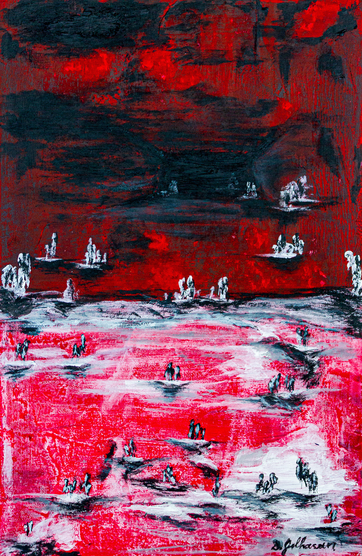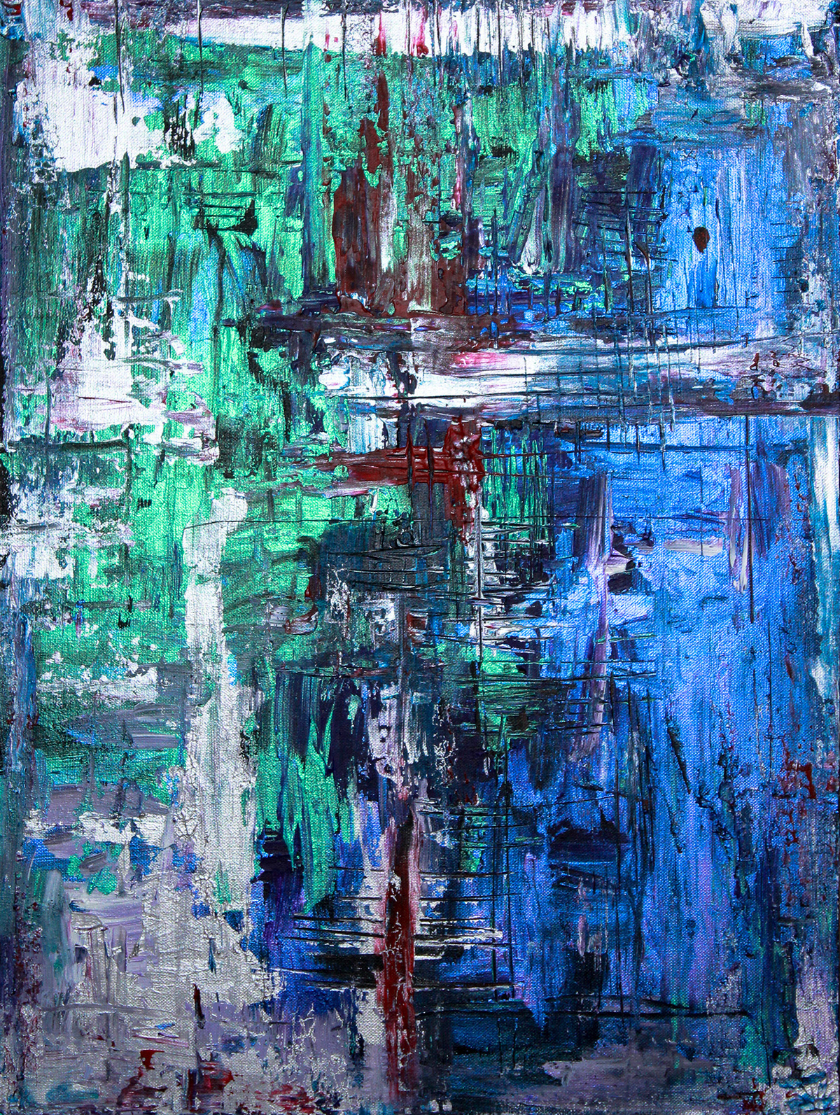Each painting becomes a kind of surface diary, a visual record of what it felt like to be in a particular state without needing to explain why. The marks are intuitive, layered, and responsive. Textures build up, break apart, and settle again. Paint is dragged, scratched, blended, wiped away. The process mirrors emotion itself. Sometimes soft. Sometimes abrupt. Always shifting.