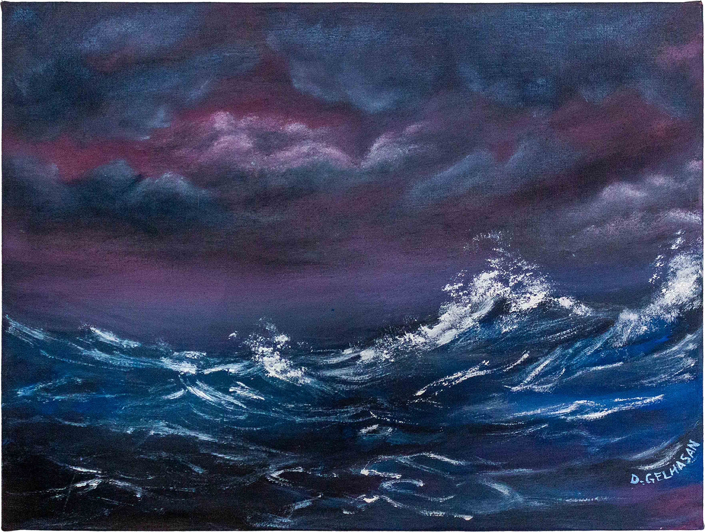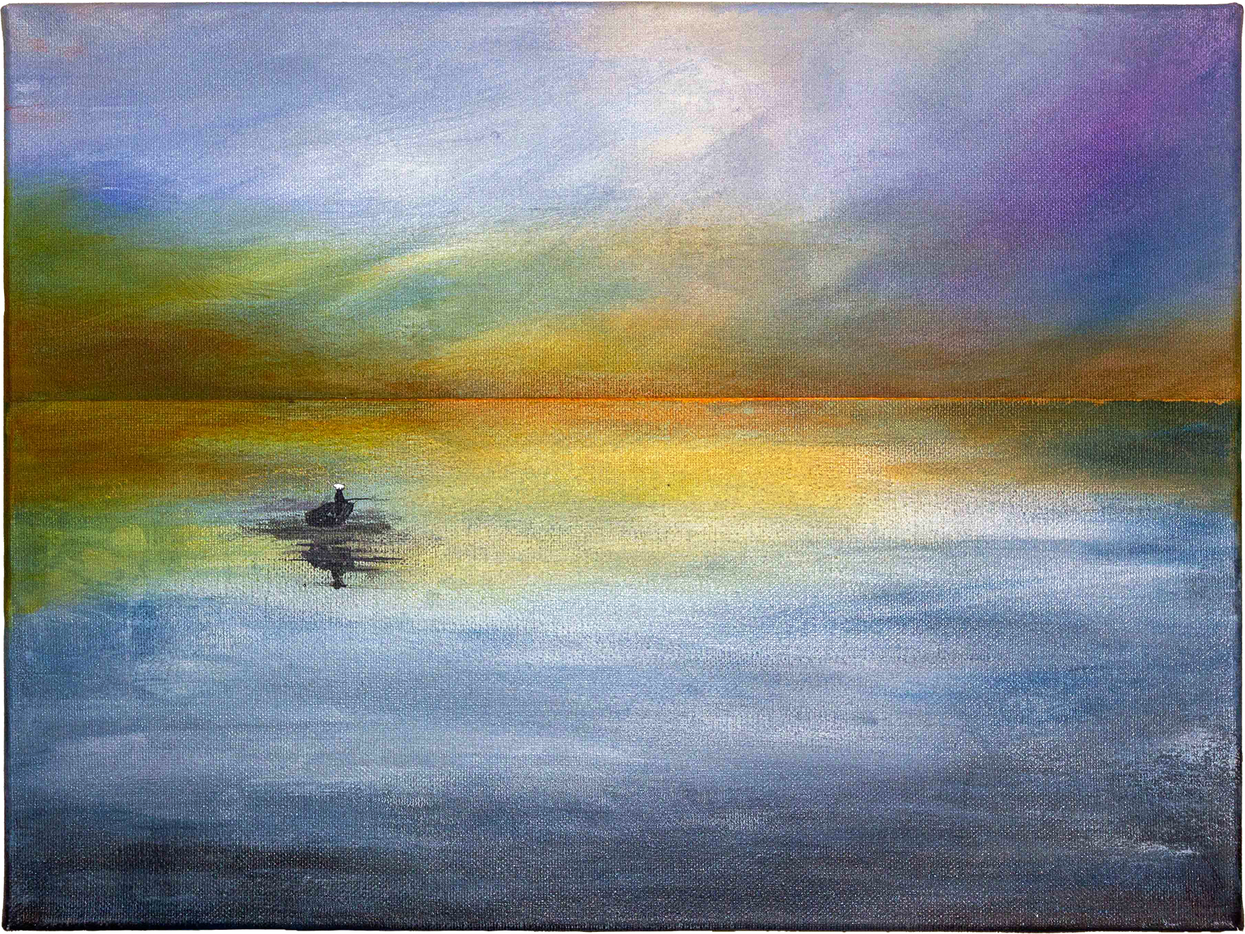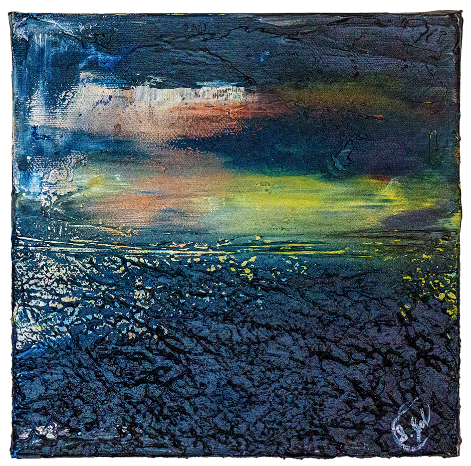 The paintings in this series often borrow the language of natural scenes—horizons, waves, skies—but dissolve it into abstraction. What remains is a suggestion. A trace. A symbolic space that invites the viewer to enter with their own associations.